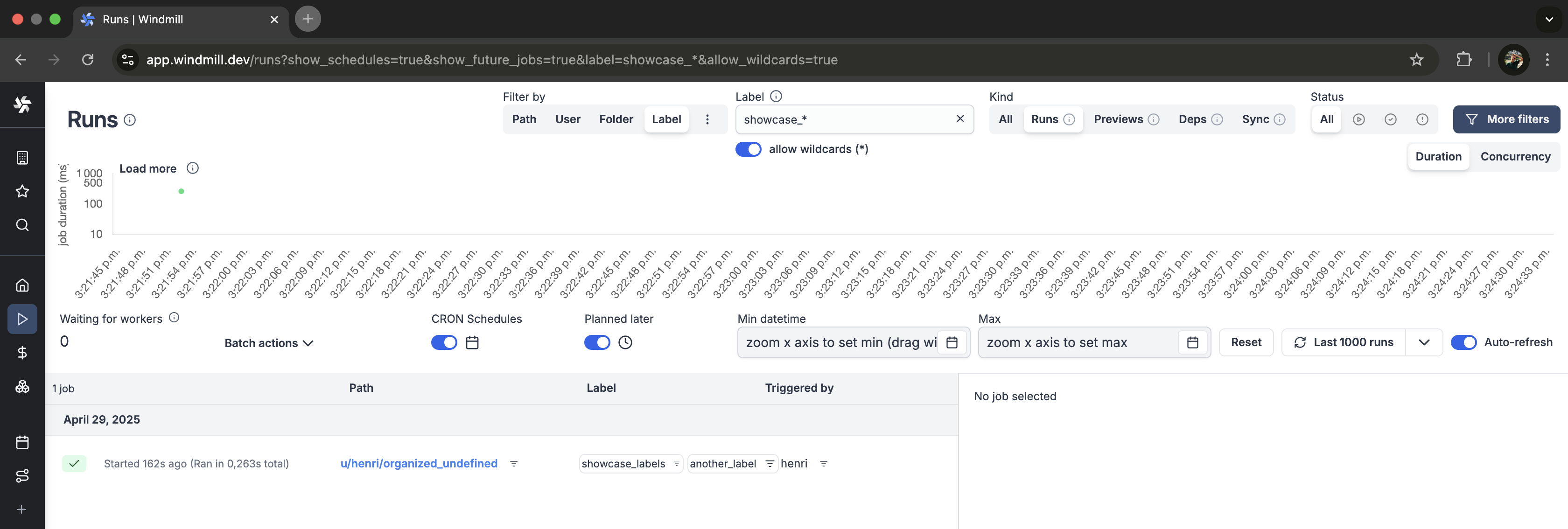 • taskScript() and taskFlow() to dispatch to existing Windmill scripts and flows by path.