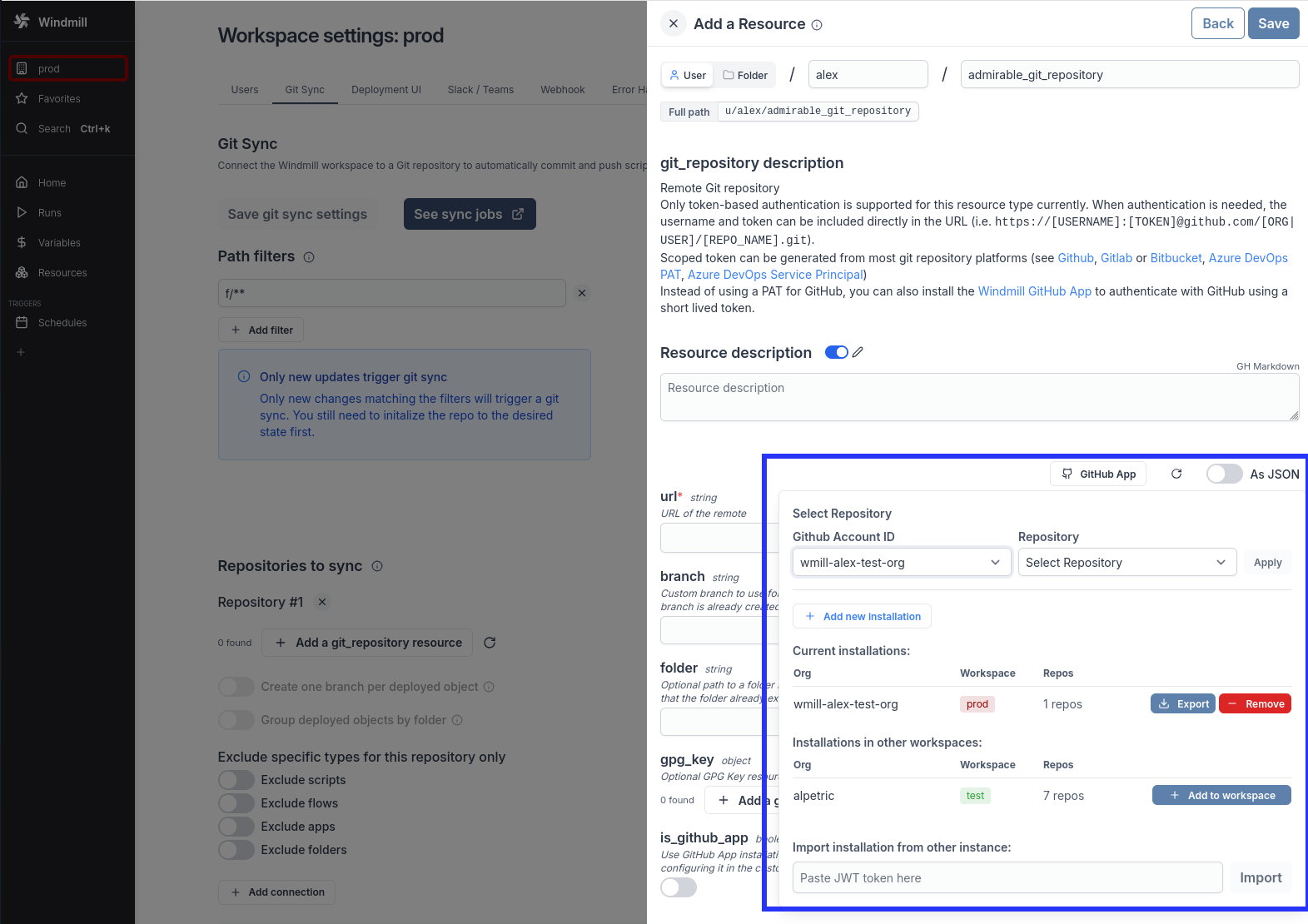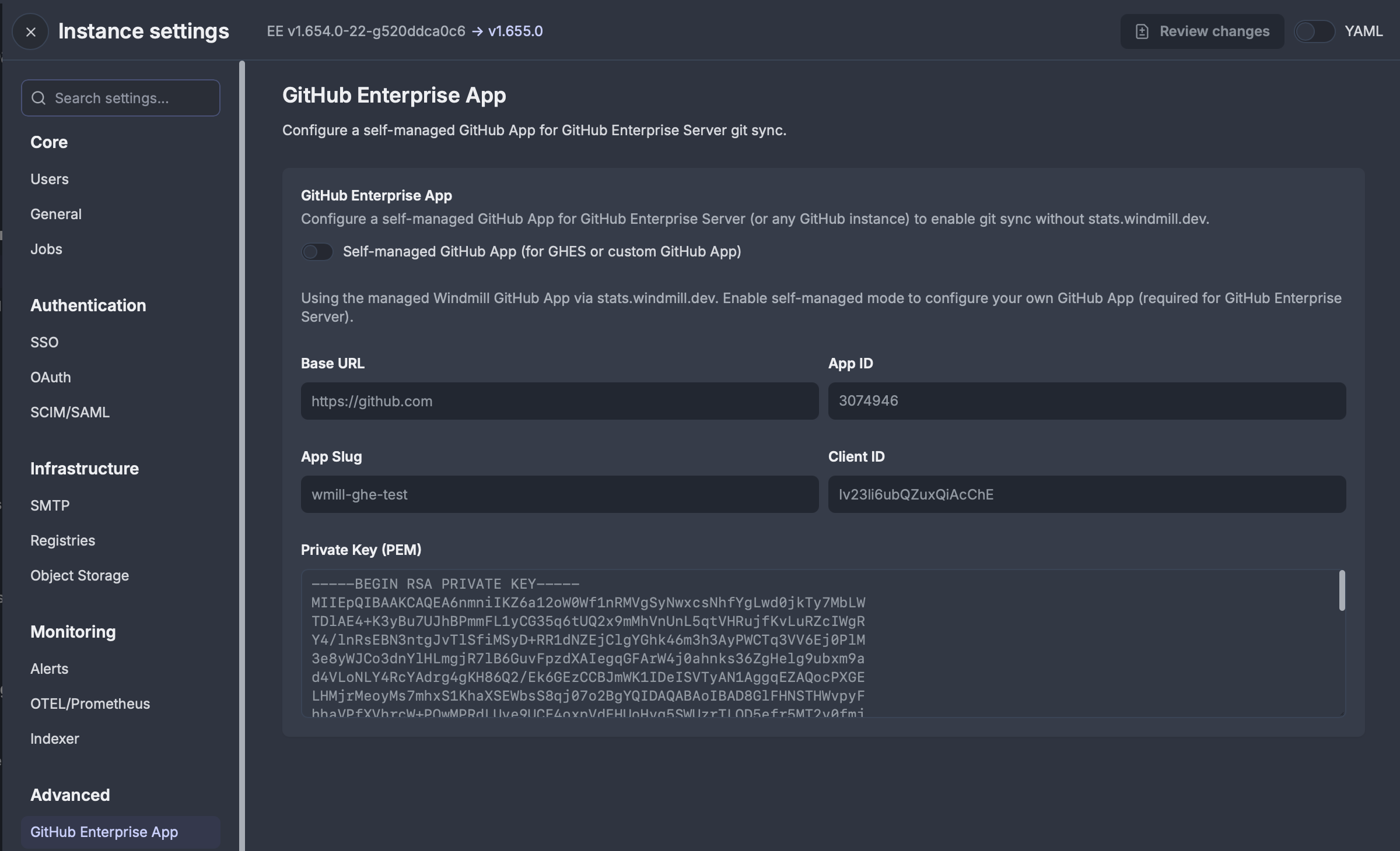 Self-managed GitHub App support for GitHub.com and GitHub Enterprise Server instances, enabling Git sync without relying on the Windmill-managed GitHub App.