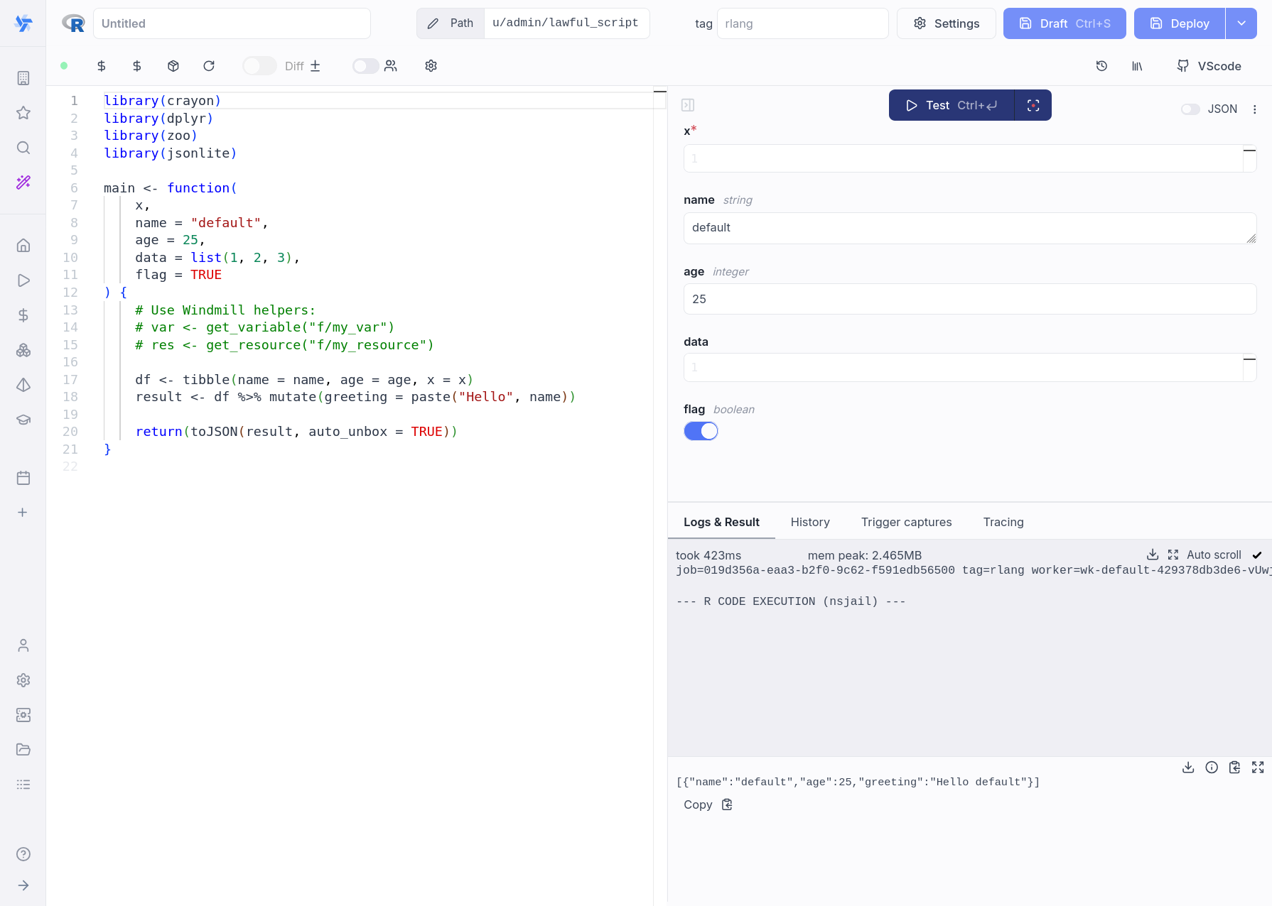 Windmill now supports R scripts with automatic CRAN package dependency management.